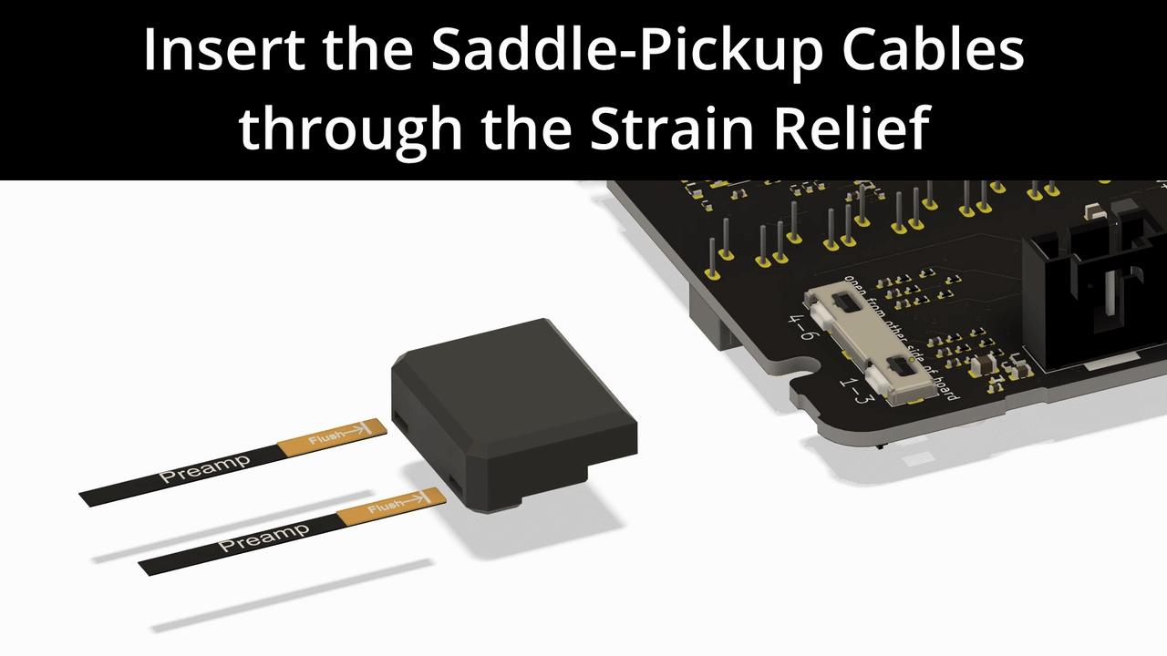 E. Thread the Saddle-Pickup cables through the Strain Relief as shown above.