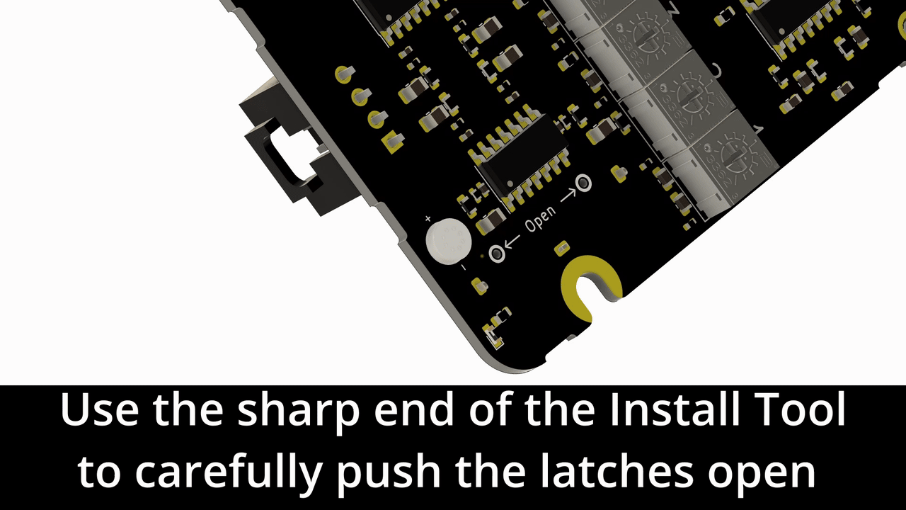 B. Use the sharp end of the Install Tool to carefully open the latches on each connector.