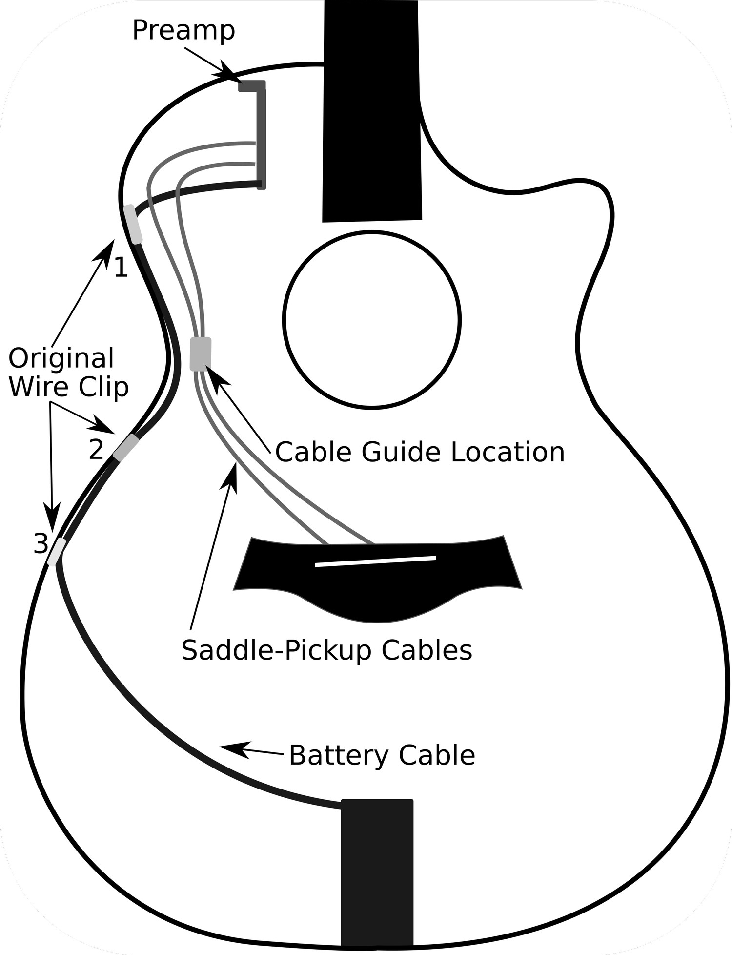 C. CAREFULLY pull the cable ends up out of the sound hole.