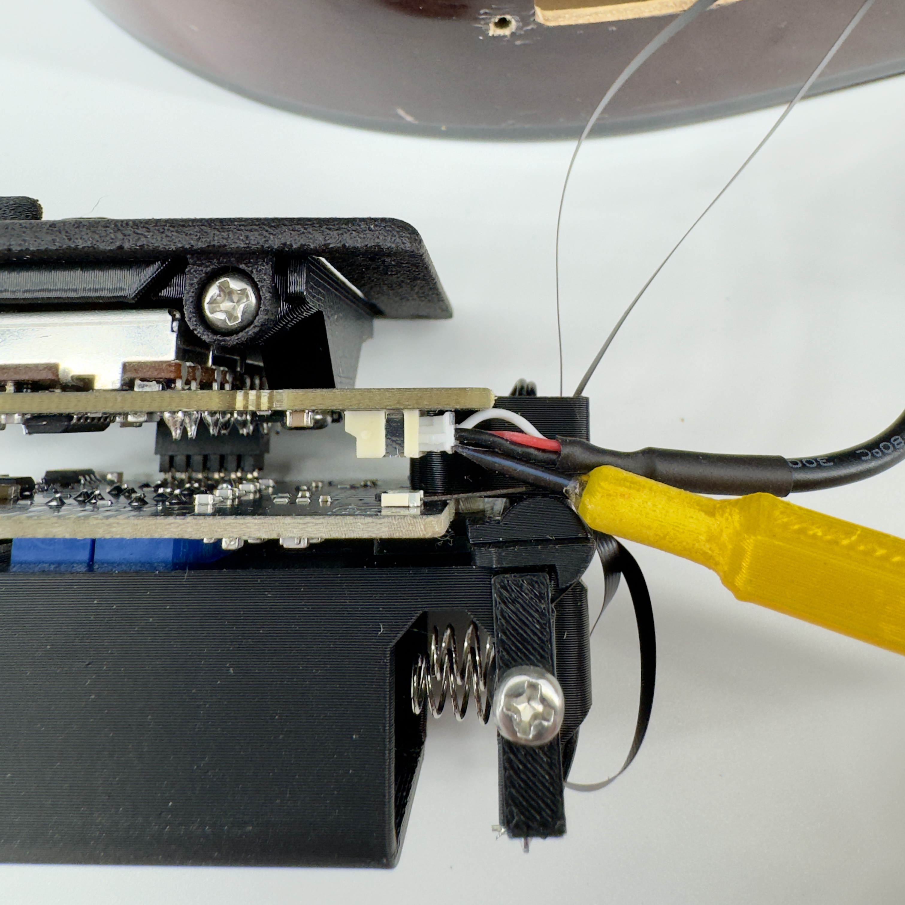 - CAREFULLY seat the Saddle-Pickup in the bridge. Make sure not to kink the cables.