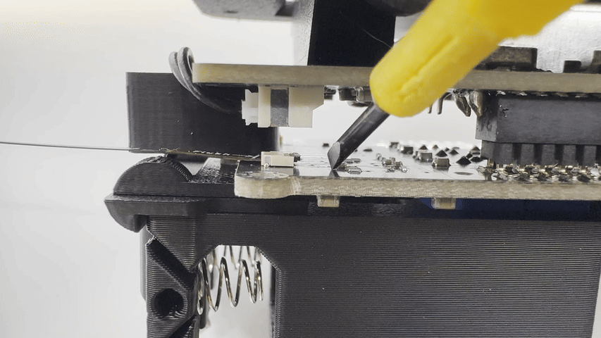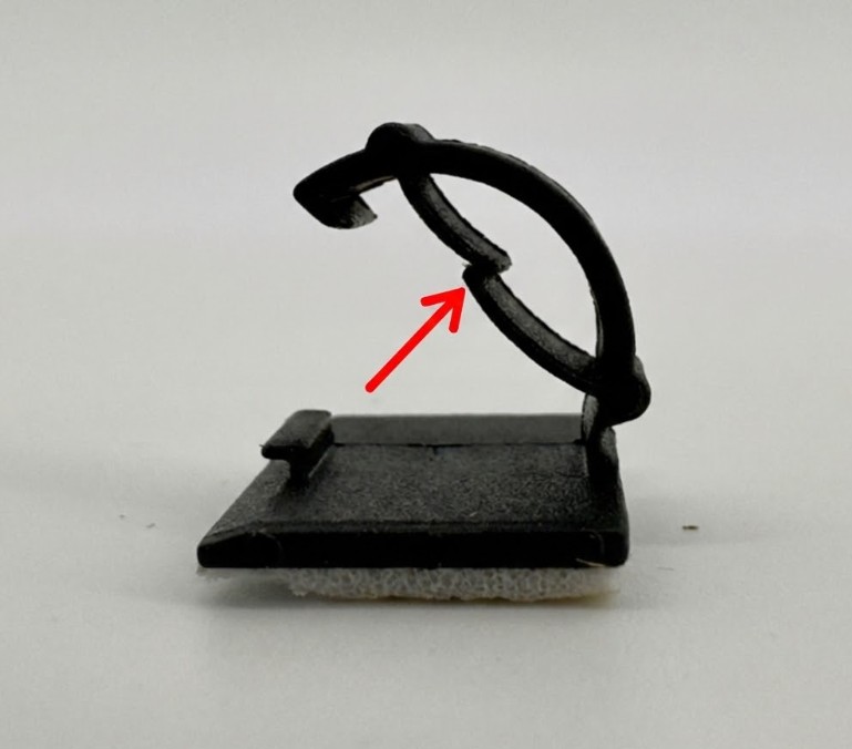 Using wire cutters to make a cut in each of the 4 Cable Clips (Part E) as shown below.