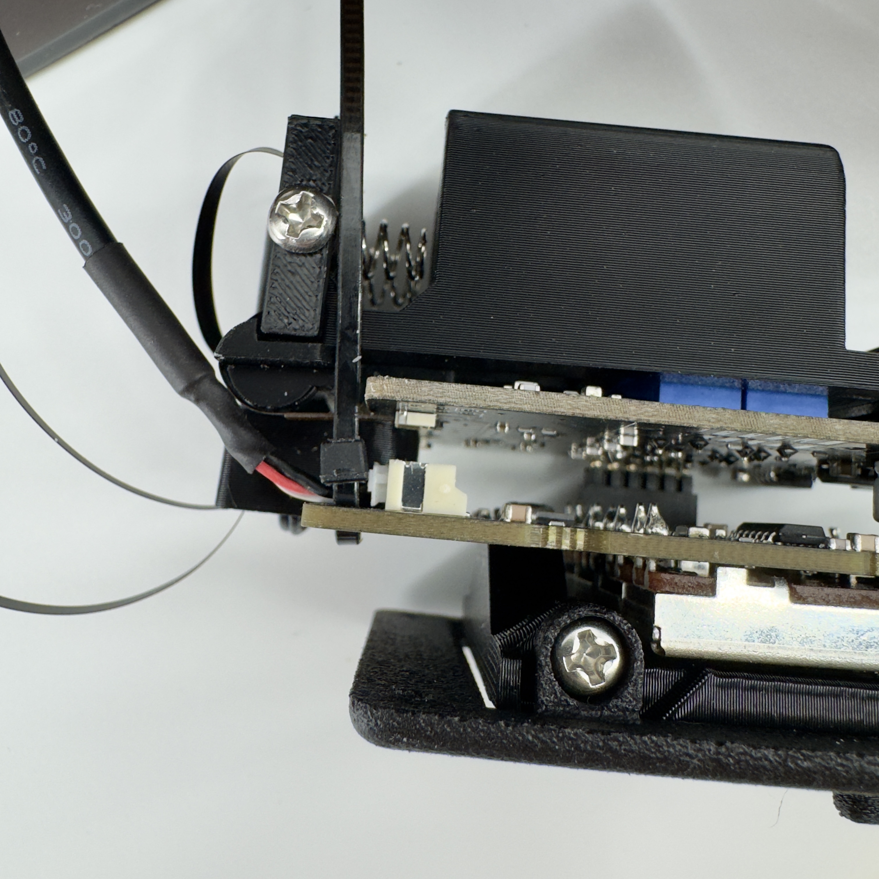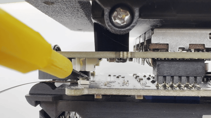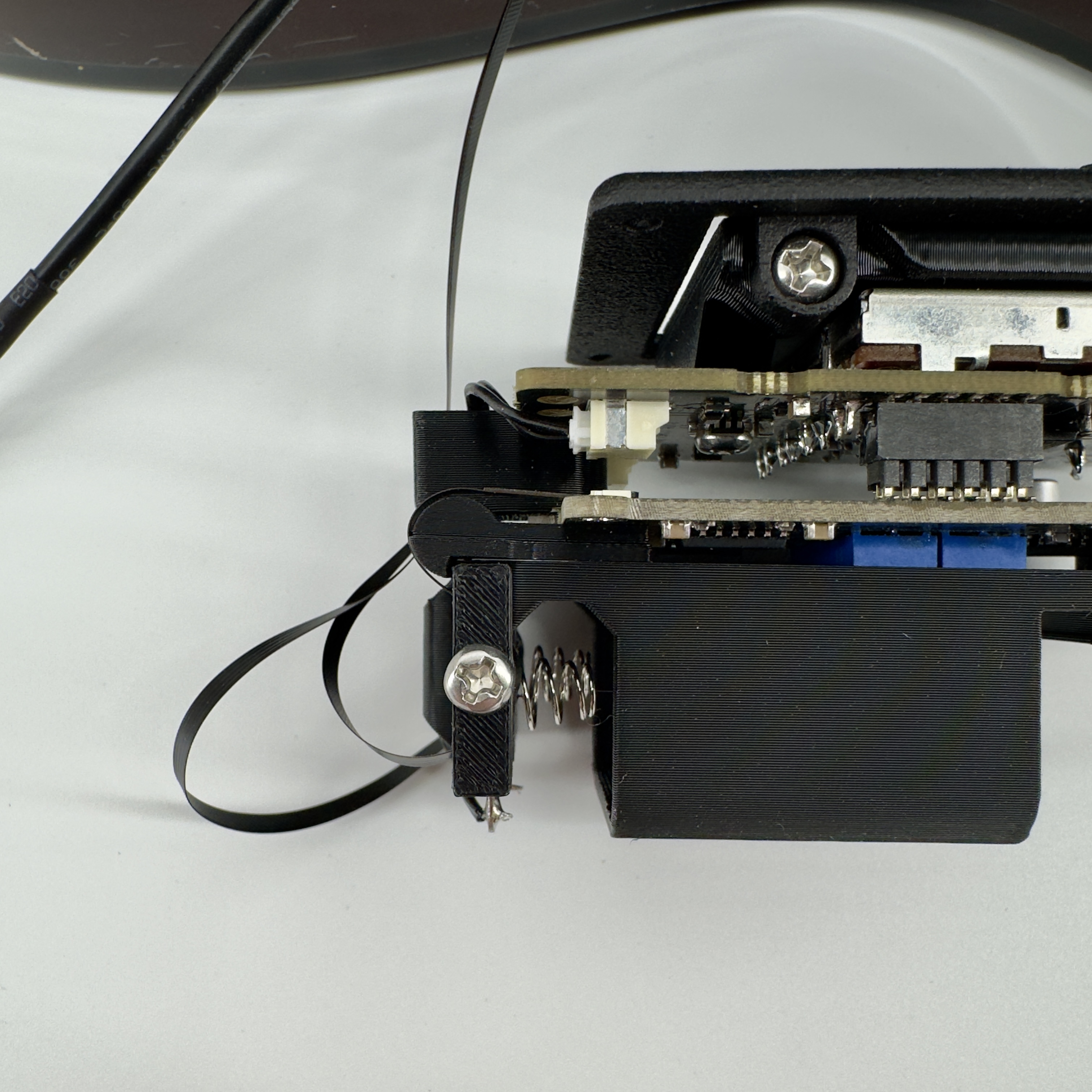 Secure the cable in place with a Battery Bracket Cable Clamp (Part H) and a Silver Screw (Part D) as shown below.