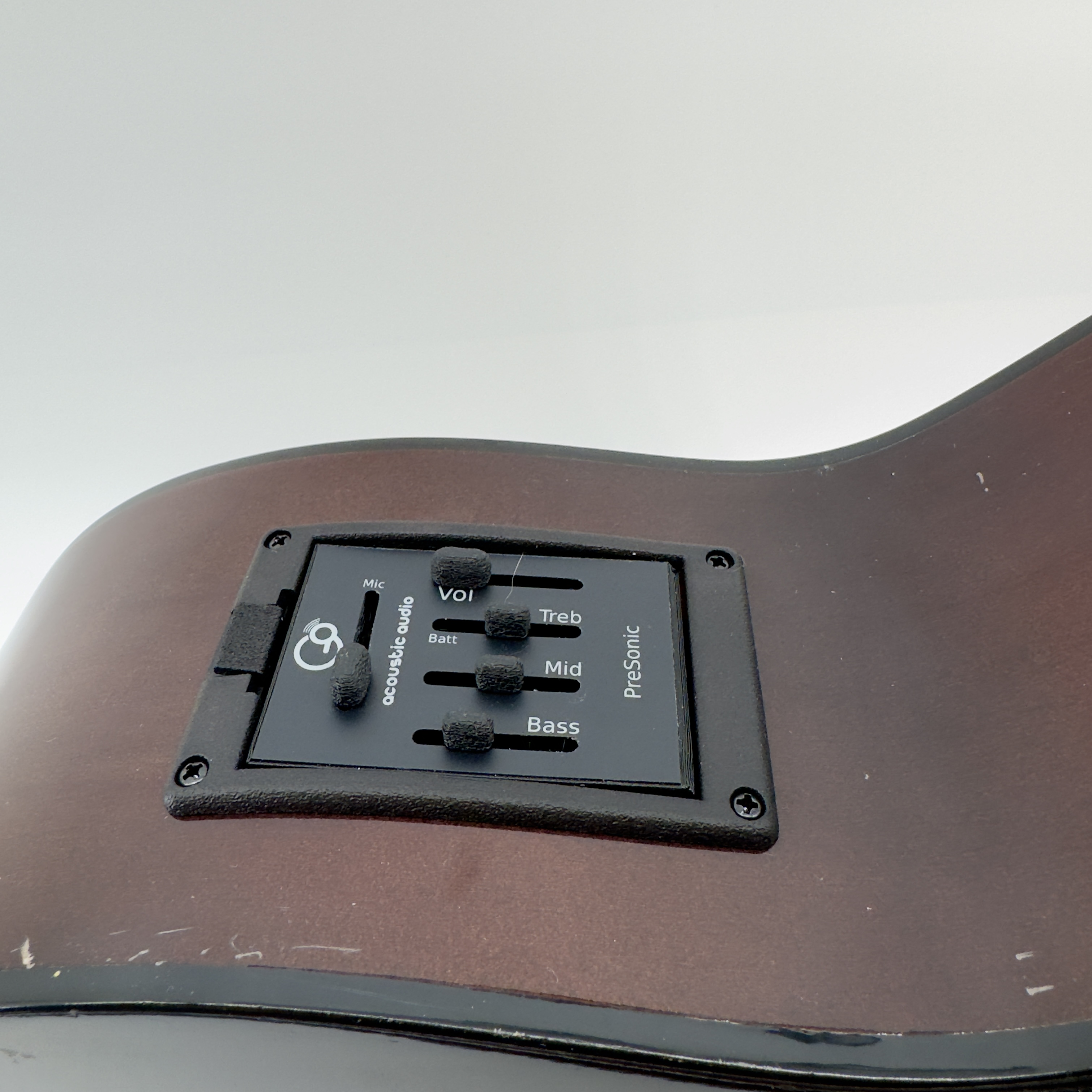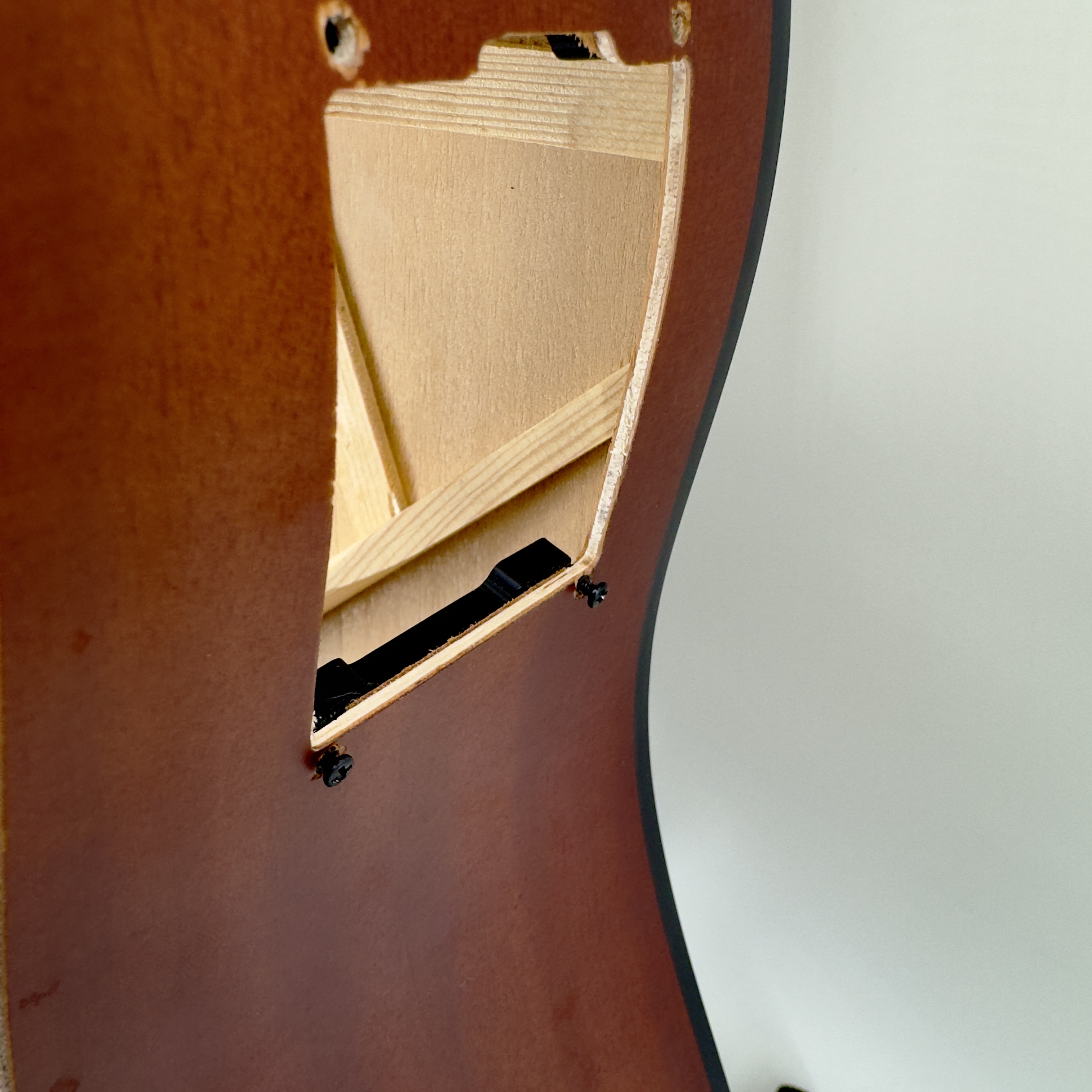 - Carefully pull the Saddle-Pickup Cable ends out of the side cutout where the preamp will go.